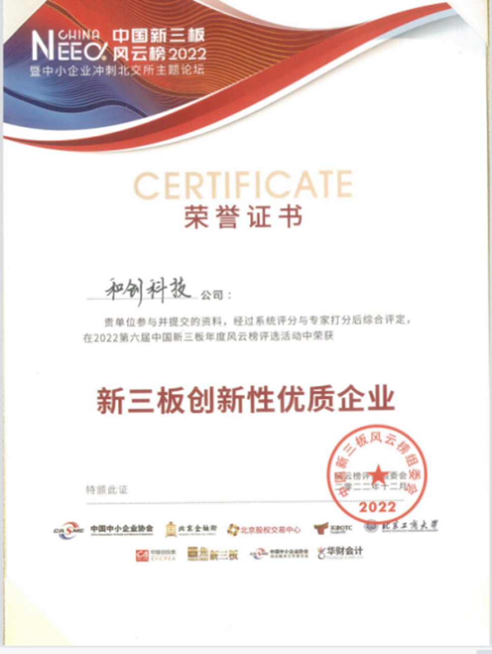 和創(chuàng)科技憑借技術(shù)突破、產(chǎn)品創(chuàng)新、細(xì)分市場(chǎng)優(yōu)勢(shì)及拓展?jié)摿Φ榷喾矫鎯?yōu)勢(shì),榮獲北京市經(jīng)濟(jì)和信息化局2021年度第二批認(rèn)定的專精特新“小巨人”企業(yè)榮譽(yù)稱號(hào)。