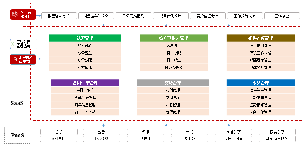 紅圈 CRM+是一款集合了工程項(xiàng)目管理功能和客戶關(guān)系管理功能的 SaaS 產(chǎn)品,以自有底層 PaaS 平臺(tái)為依托,以業(yè)務(wù)實(shí)踐經(jīng)驗(yàn)為指導(dǎo)而構(gòu)建。產(chǎn)品以助力企業(yè)級(jí)客戶提效率、降風(fēng)險(xiǎn)、控成本、管過程、增利潤(rùn)為核心價(jià)值,能夠?qū)崿F(xiàn)在工程項(xiàng)目管理和客戶關(guān)系管理領(lǐng)域不同功能模塊的靈活配置,滿足客戶的個(gè)性化需求。