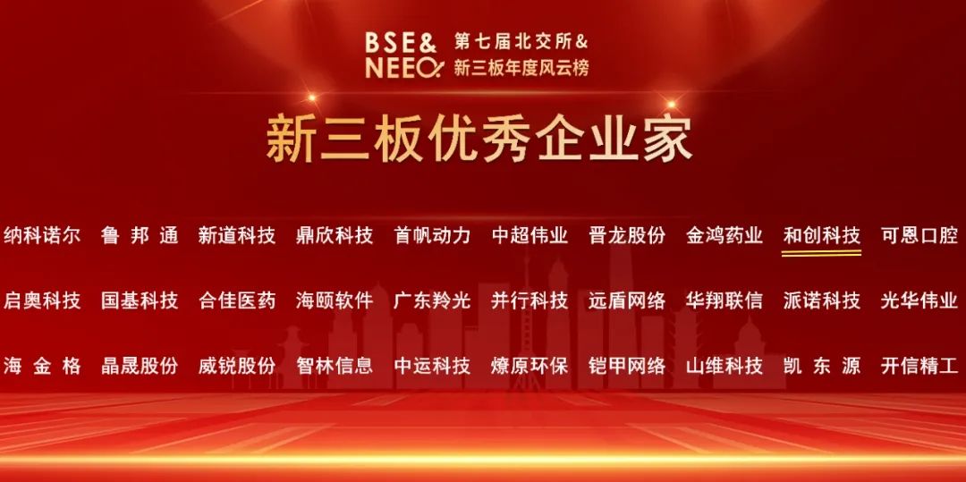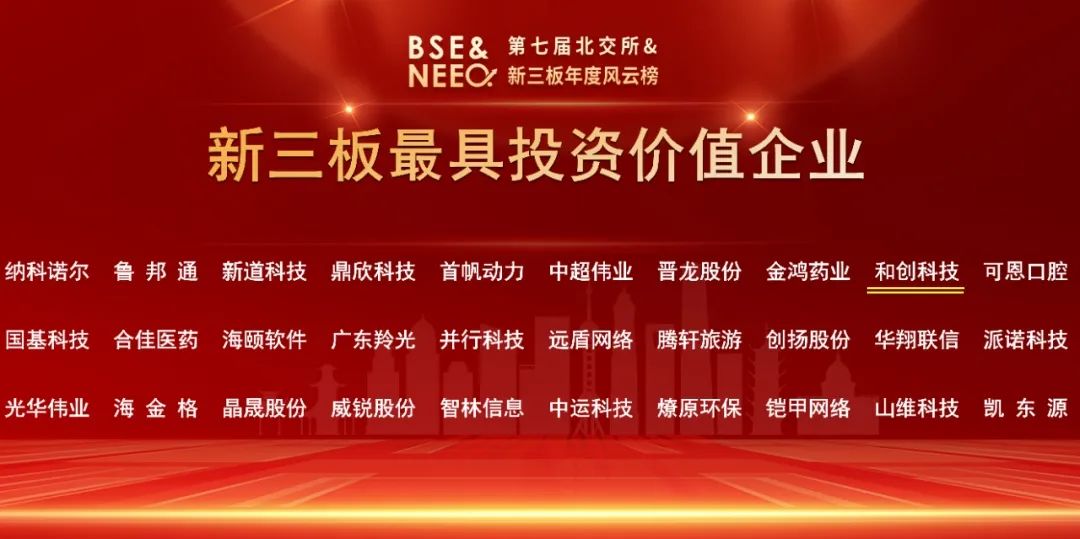 和創(chuàng)科技斬獲第七屆北交所&新三板年度風(fēng)云榜“新三板最具投資價(jià)值企業(yè)”等兩項(xiàng)殊榮