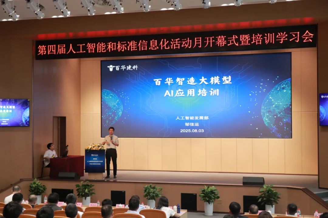 隨后,公司人工智能發(fā)展部副總經(jīng)理鄒佳運(yùn)發(fā)布《人工智能與標(biāo)準(zhǔn)信息化成果與未來發(fā)展》報(bào)告。他指出,“百華智造”管理系統(tǒng)已覆蓋公司94%的業(yè)務(wù)流程,實(shí)現(xiàn)跨部門數(shù)據(jù)共享,AI助手、AI視覺識(shí)別及AI報(bào)表分析等技術(shù)已全面落地應(yīng)用。未來將重點(diǎn)強(qiáng)化預(yù)算管理模塊功能,通過授權(quán)精簡(jiǎn)審批流程,深化AI應(yīng)用,助力項(xiàng)目提質(zhì)增效。