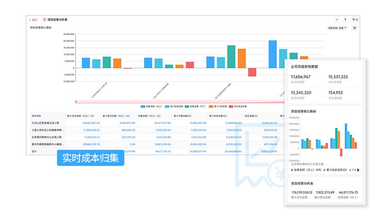 提供動態成本管理,實時成本歸集,隨時掌握項目收支、盈利狀況。