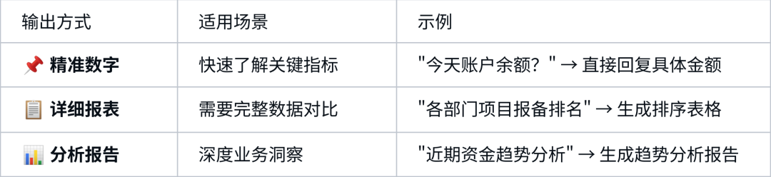 系統(tǒng)智能識(shí)別查詢(xún)需求,支持多種輸出方式,滿(mǎn)足不同場(chǎng)景需求: