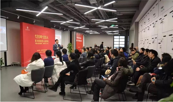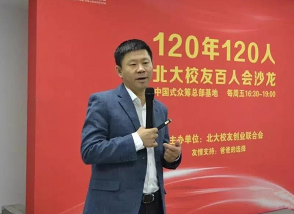北大校友創(chuàng)業(yè)聯(lián)合會副會長,飛找創(chuàng)始人,97級數(shù)學(xué)系校友徐志勇?lián)伪緢鲋鞒旨钨e,介紹了“120年120人——北大校友百人會沙龍”活動,它是北大校友創(chuàng)業(yè)聯(lián)合會為了慶祝2018年北京大學(xué)120周年雙甲子華誕而推出的系列交流活動。該活動從北大校友中精選出120位各細(xì)分領(lǐng)域排名靠前的行業(yè)領(lǐng)軍人物代表作為演講嘉賓,主要目的是為校友提供一個 “社交+學(xué)習(xí)+合作”的平臺。