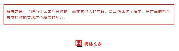 無(wú)論是是否喜歡,那一刻,你在客戶心中的位置是"一個(gè)人正在向我銷售東西",你正在進(jìn)行一場(chǎng)激烈的戰(zhàn)斗來(lái)贏得信任。在這樣的環(huán)境下,你做的最錯(cuò)的事情是通過(guò)一虛情假意的行為來(lái)套詞。