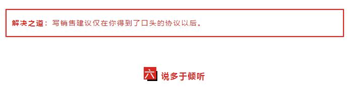 雖然建議偶爾會(huì)給銷售帶來(lái)機(jī)會(huì),大多數(shù)情況下,需要流程的建議最好在確定了問(wèn)題,同時(shí)也確定了解決方案的時(shí)候在進(jìn)行。因?yàn)閷懡ㄗh需要花時(shí)間和辛苦,除非你已經(jīng)在銷售過(guò)程中,否則這是一個(gè)壞的投資。