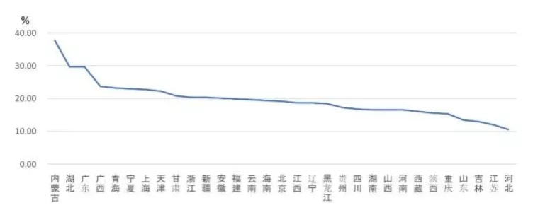 從各地區(qū)建筑業(yè)總產(chǎn)值增長情況看,所有地區(qū)的建筑業(yè)總產(chǎn)值較上年同期都有不同幅度的增長。其中,內(nèi)蒙古的增幅最大,達(dá)到了37.93%,此外,湖北、廣東、廣西、青海、寧夏、上海、天津、甘肅、浙江、新疆、安徽等11個地區(qū)的增幅均超過20%(圖2)。