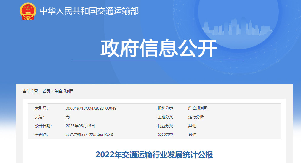 行業熱點?|?《2022年交通運輸行業發展統計公報》發布!投資3.8萬億元!
