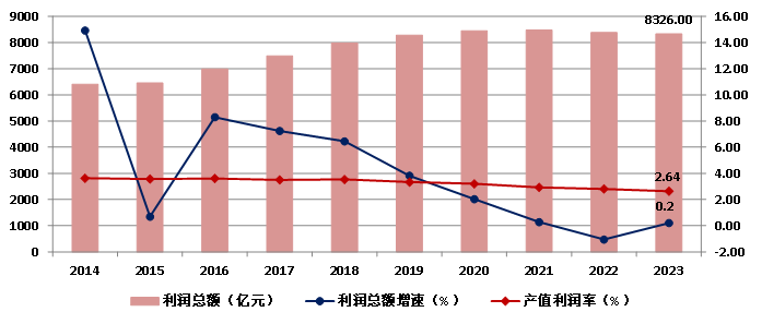 圖9 2014-2023年全國建筑業企業利潤總額及產值利潤率