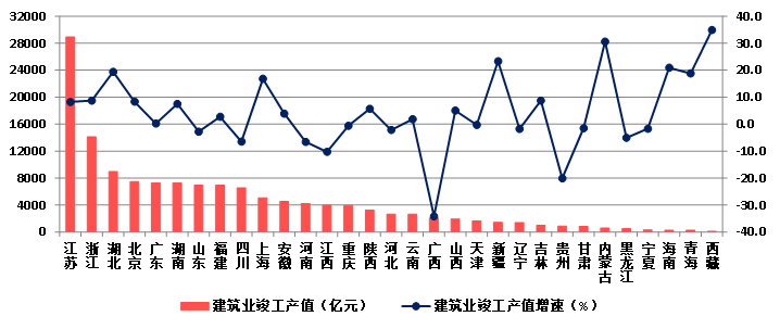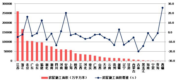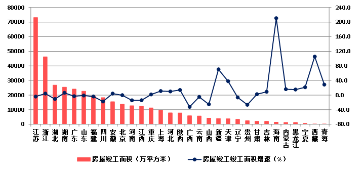 (八)25個地區房屋建筑施工面積下降 瓊、藏房屋建筑竣工面積增速顯著