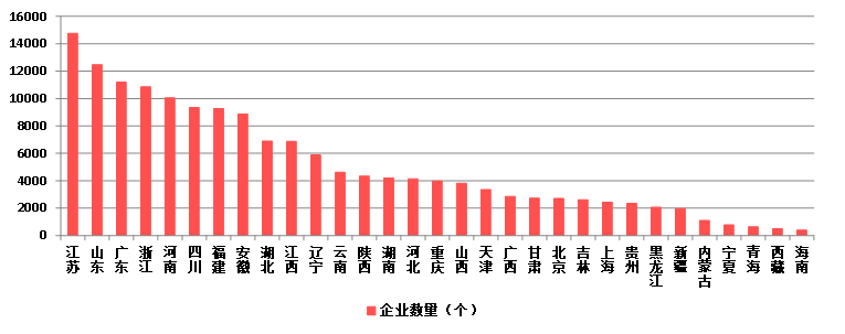 2023年,江蘇、山東、廣東、浙江、河南五省建筑業企業數量均超過1萬家。企業數量超過5000家的還有四川、福建、安徽、湖北、江西、遼寧等6個地區(圖21)。