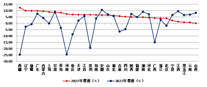 圖16 2022-2023年各地區建筑業總產值增速