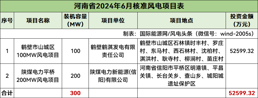 河南核準(zhǔn)2個(gè)風(fēng)電項(xiàng)目,總規(guī)模300MW,總投資52599.32萬(wàn)元,均為陸上風(fēng)電項(xiàng)目。