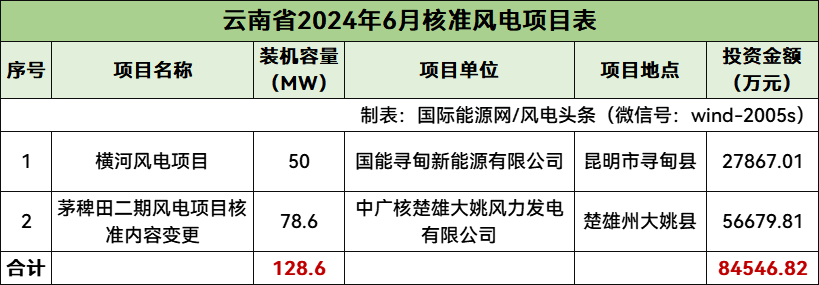 云南核準(zhǔn)2個(gè)風(fēng)電項(xiàng)目,總規(guī)模128.6MW,總投資84546.82萬(wàn)元,均為陸上風(fēng)電項(xiàng)目。