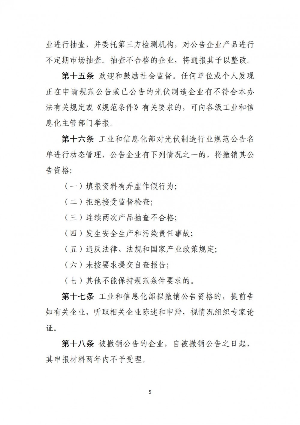 7月9日,工業和信息化部電子信息司對《光伏制造行業規范條件及公告管理辦法(征求意見稿)》公開征求意見。