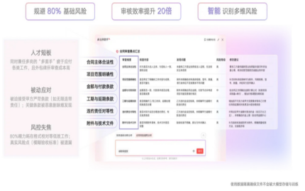 AI業(yè)務(wù)助手就能在這里大顯身手。通過大模型快速理解合同文本,自動(dòng)標(biāo)出關(guān)鍵的風(fēng)險(xiǎn)點(diǎn)、權(quán)責(zé)不對(duì)等的條款,并給出修改建議。這相當(dāng)于讓法務(wù)人員可以集中精力攻克最核心、最復(fù)雜的法律問題,審核效率和質(zhì)量都能獲得提升。紅圈AI的介入,讓管理流程不僅自動(dòng)化,更實(shí)現(xiàn)了智能化升級(jí)。